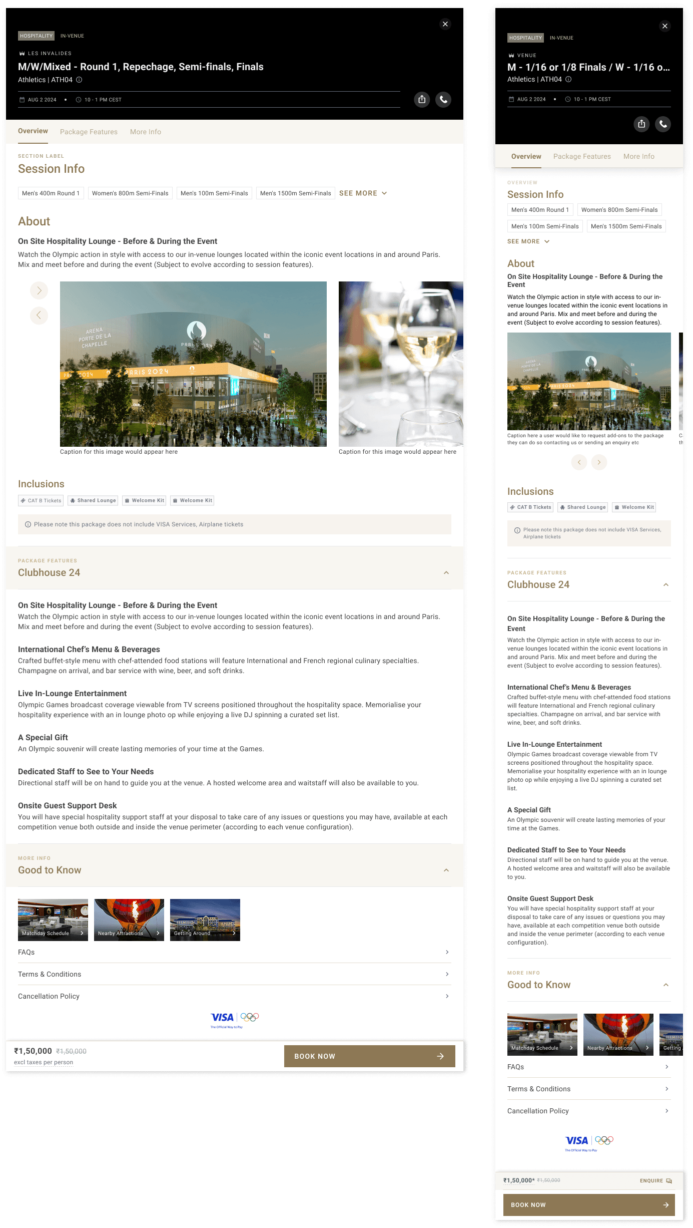 I restructured the checkout flow by clarifying steps, improving form usability, and reducing cognitive load so users could book their packages more seamlessly.