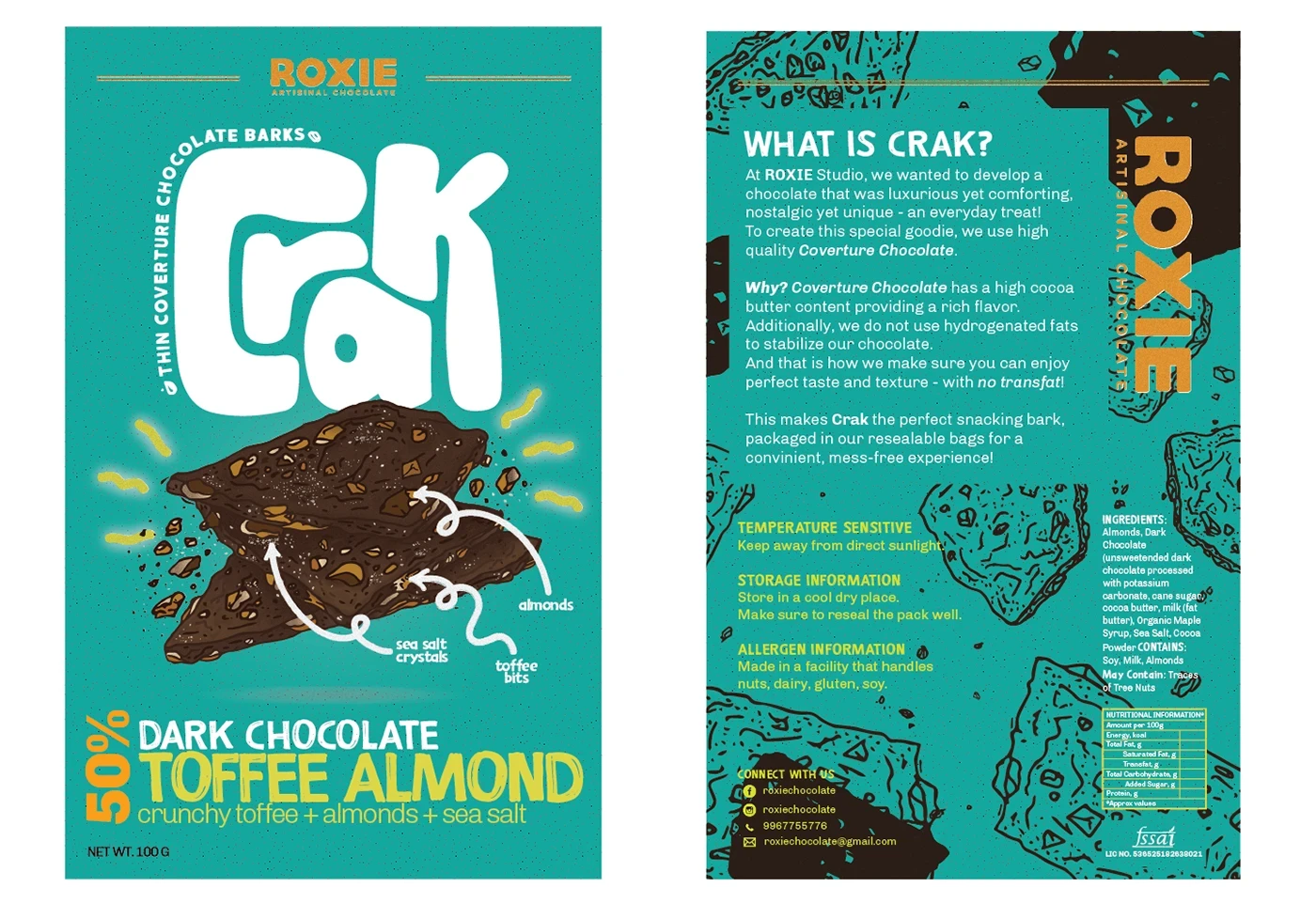 Roxie Studio, a Mumbai-based chocolate brand, wanted to expand from seasonal treats to everyday indulgence. I designed a playful, grown-up identity for Roxie and its sub-brand Crak -balancing vibrance, charm, and accessibility through color, type, and packaging that celebrates chocolate’s fun, everyday spirit.