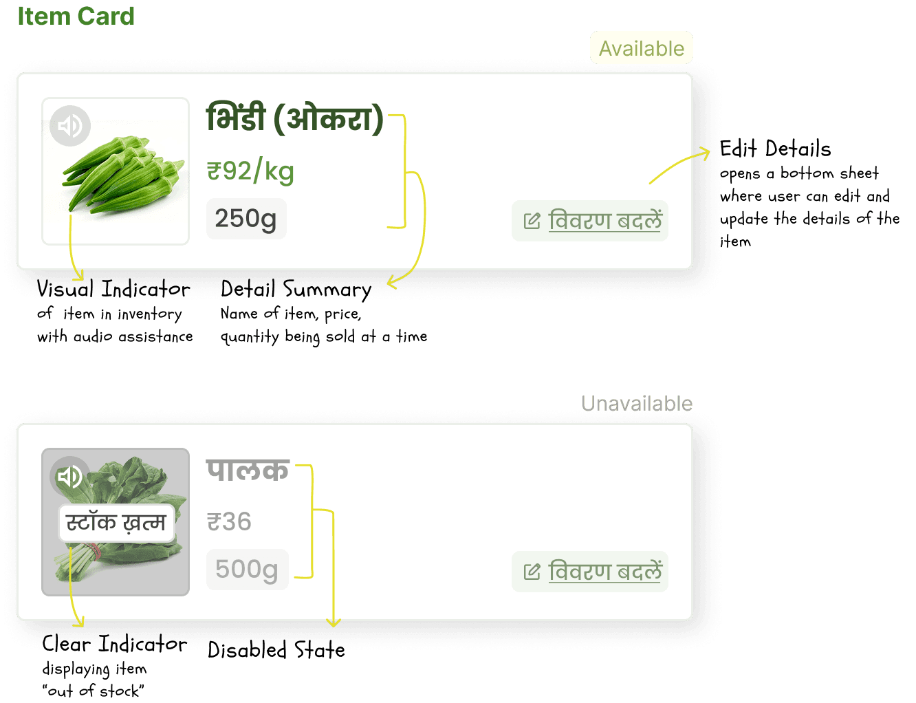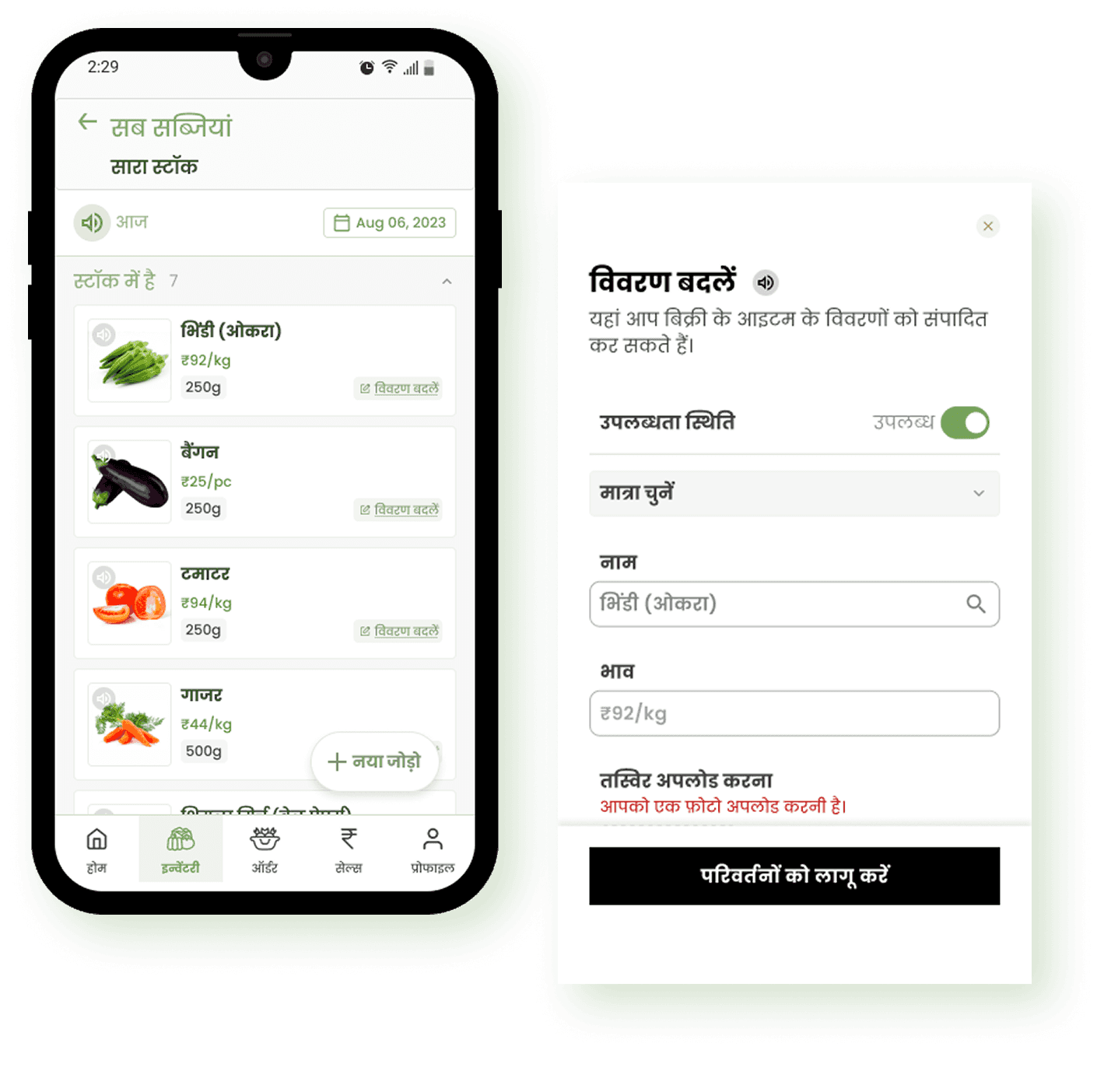Enabled a seller-first digital workflow that fits naturally into the daily routines of local vegetable vendors using entry-level smartphones
