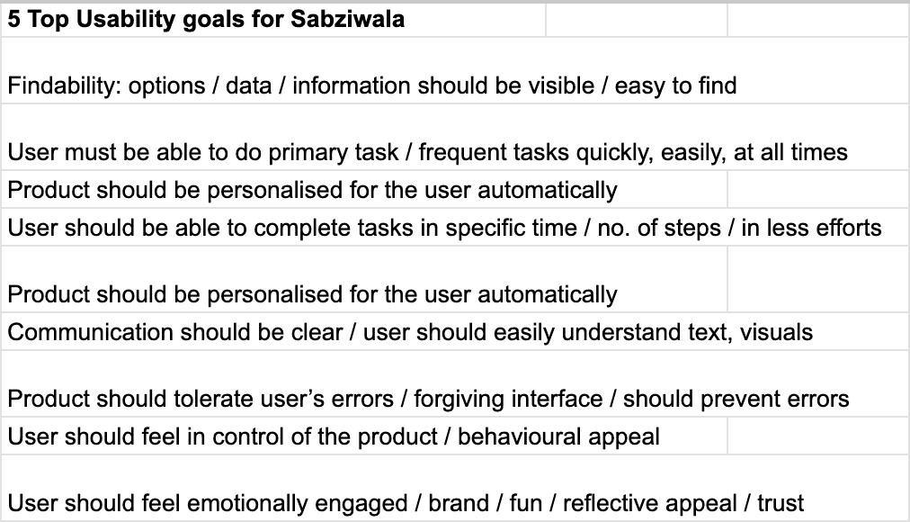 From the insights gathered from the interviews and after putting together our persona, we set usability goals for the app,
